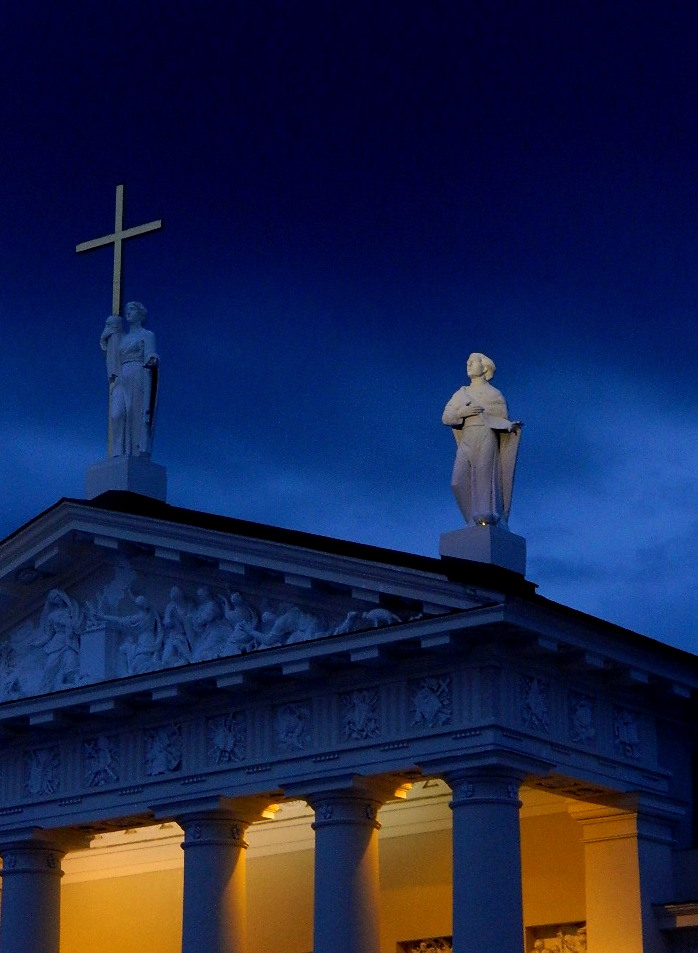 Yesterday evening, I went for a walk around Vilnius and I was threefold lucky: I came past Vilnius Cathedral exactly at dusk, there were beautiful clouds, and I had my camera with me.