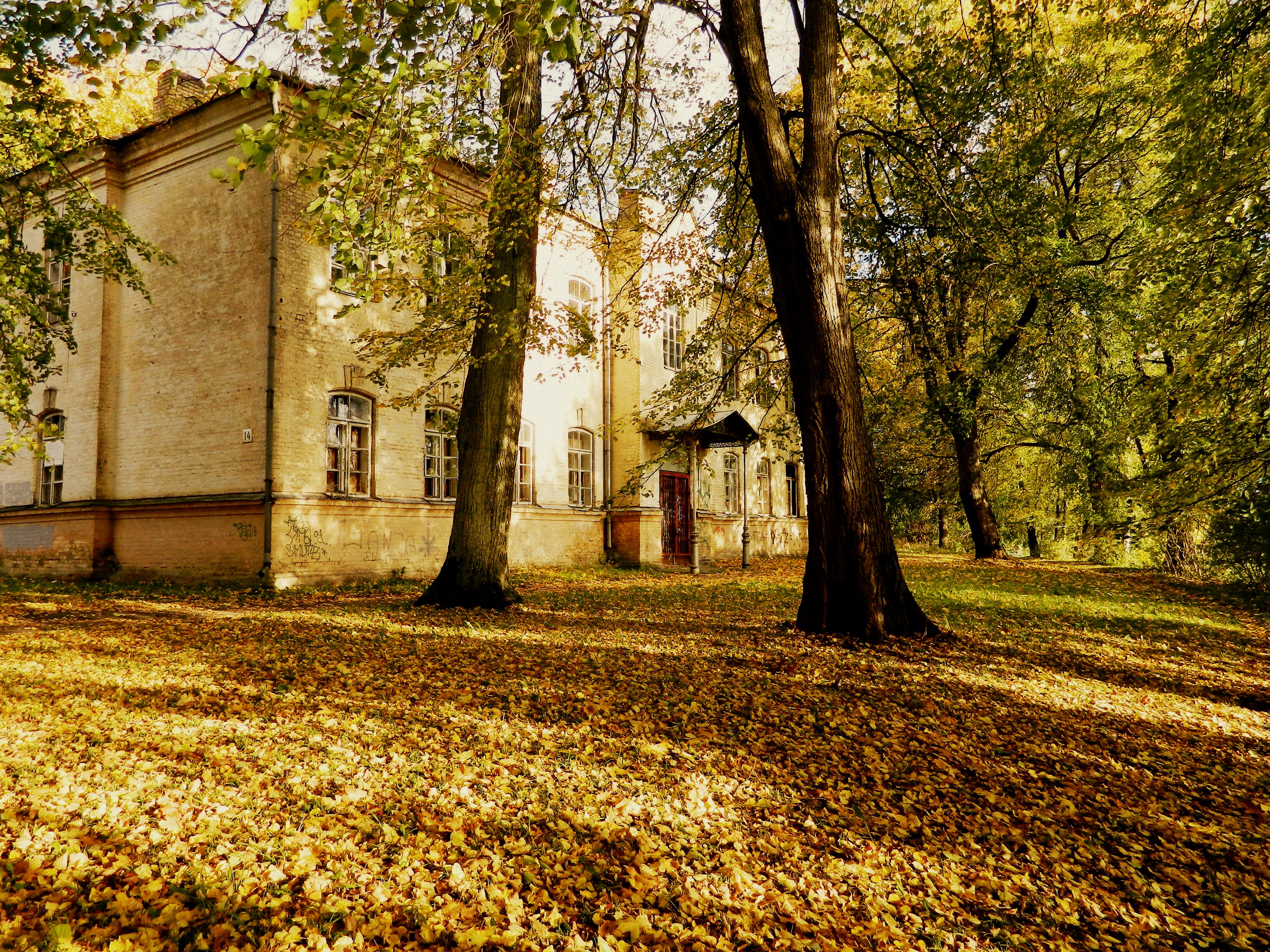 Later that day I stumbled across another building which was no longer in use. It looked like a former schoolhouse or administrative building and provided a beautiful scene between the colourful trees.