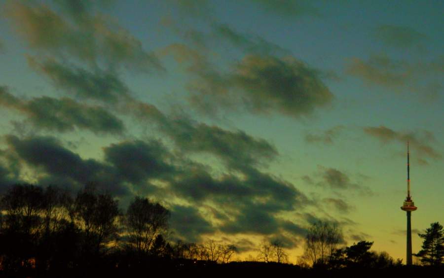 clouds evening TV tower Vilnius