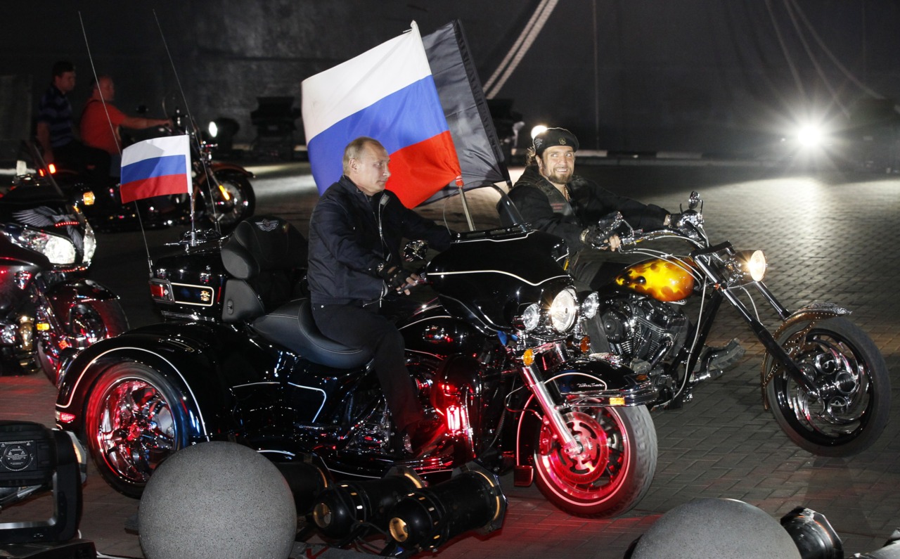 Mr Putin as a motorbike-riding rocker:
