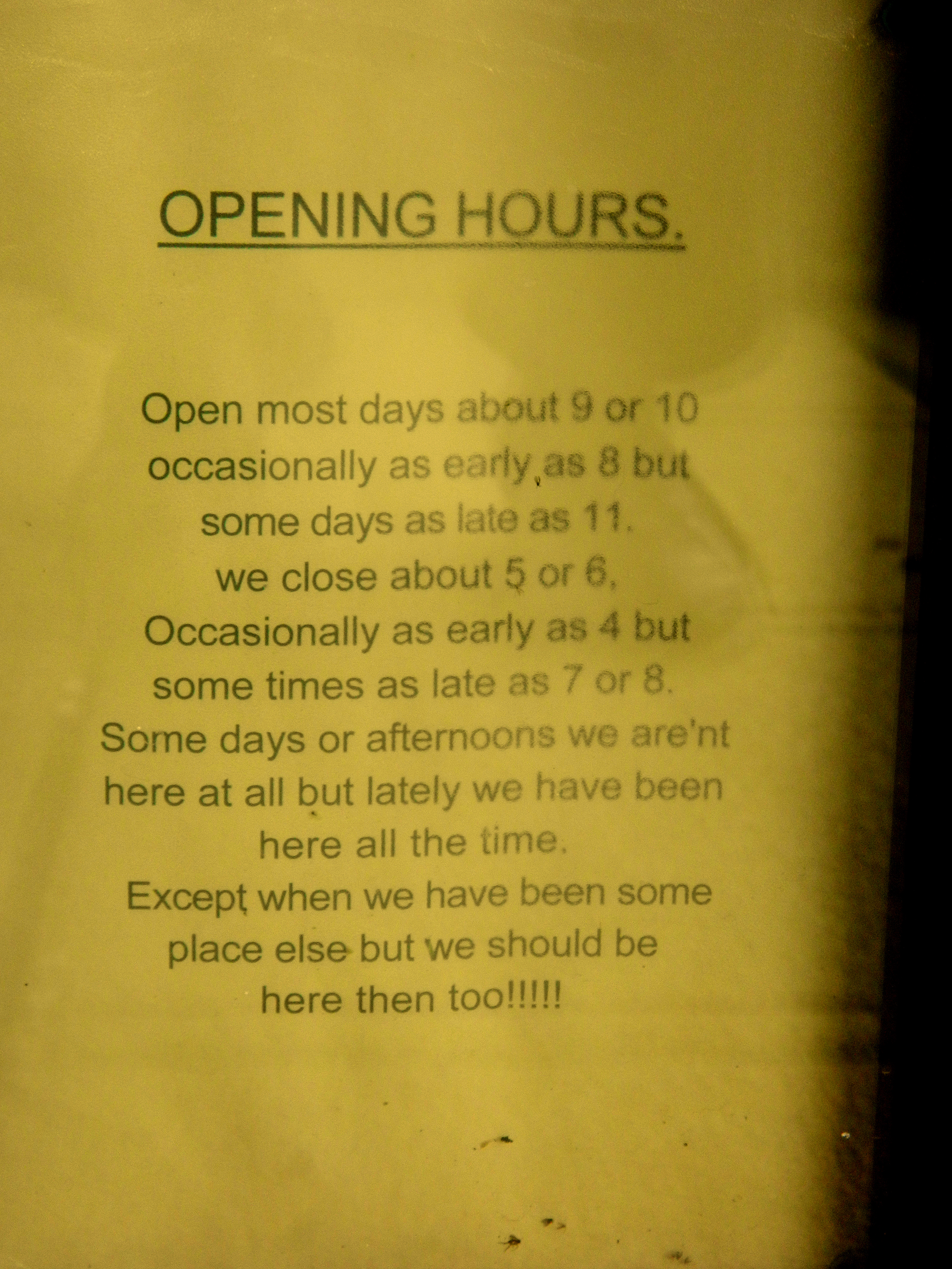 The place was closed and the information in the window didn’t help much: