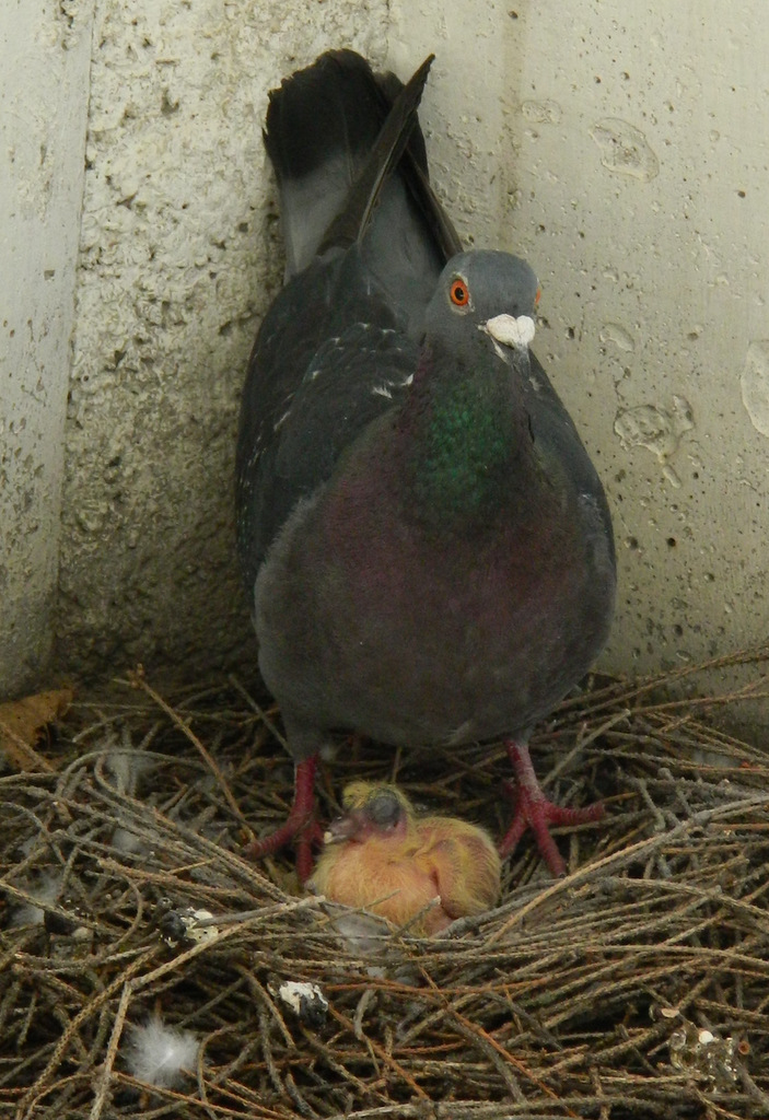 Here some rare shots of mother and child together (usually the mother flies off as soon as I step on the balcony):