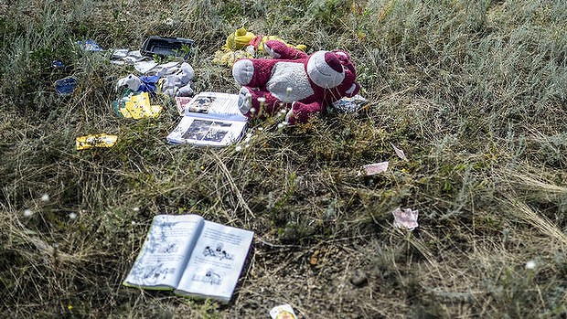 A Boeing 777 working hard on Malaysia Airlines flight MH17 from Amsterdam to Kuala Lumpur fell from the sky over Ukraine on 17 July 2014. Everyone on board died.