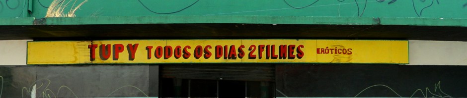 But there was one more cinema in the same road, the Tupy, and maybe it would be open. At first sight, it didn’t look too promising either. The choice of colors and the typeface looked like 1950s/1960s. But then, the door was open and the sign promised “two films every day”, adding – in smaller print – “erotic ones”. That was not what I had come looking for.