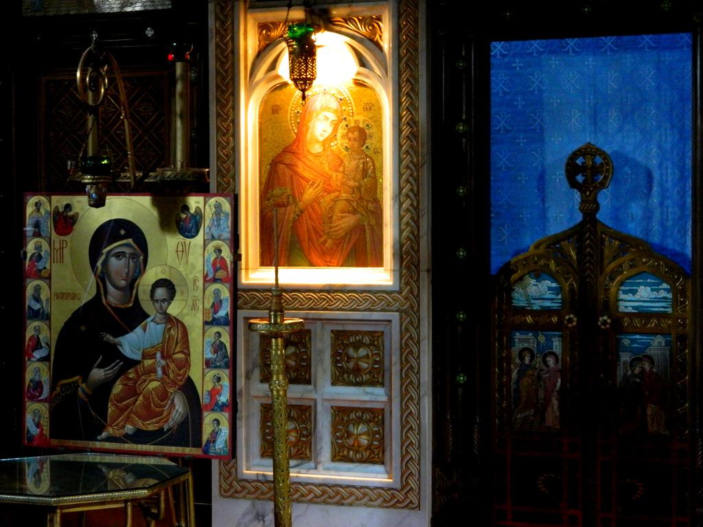 This oversight was probably due to a much smaller, but more interesting church which stands in a nice garden to the left of the cathedral: the Church of the Three Holy Hierarchs, consecrated in 1639.