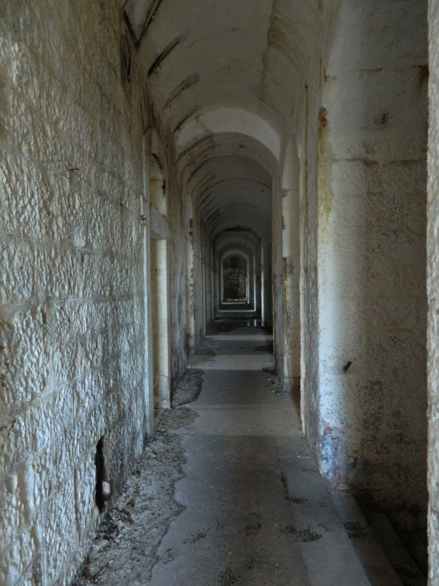 To venture into the interior of the fort, particularly into the tunnels and basements, a lamp would be useful. In accordance with my guidelines on adventure (no. 17), I had of course not brought a lamp. That looked like a stupid decision, but only for a short time, because equally in accordance with aforementioned guidelines (no. 5), two guys from Russia appeared from the forest, who also wanted to explore the military installations, who had lamps and whom I joined in the spirit of peace among the peoples. Now, “two guys from Russia” sounds very innocent, but anyone who has Russian friends, can imagine what the two were thinking when they said: “We’ll explore the fortress from the basement to the roof. Let’s go!” Because Russians do it like this: