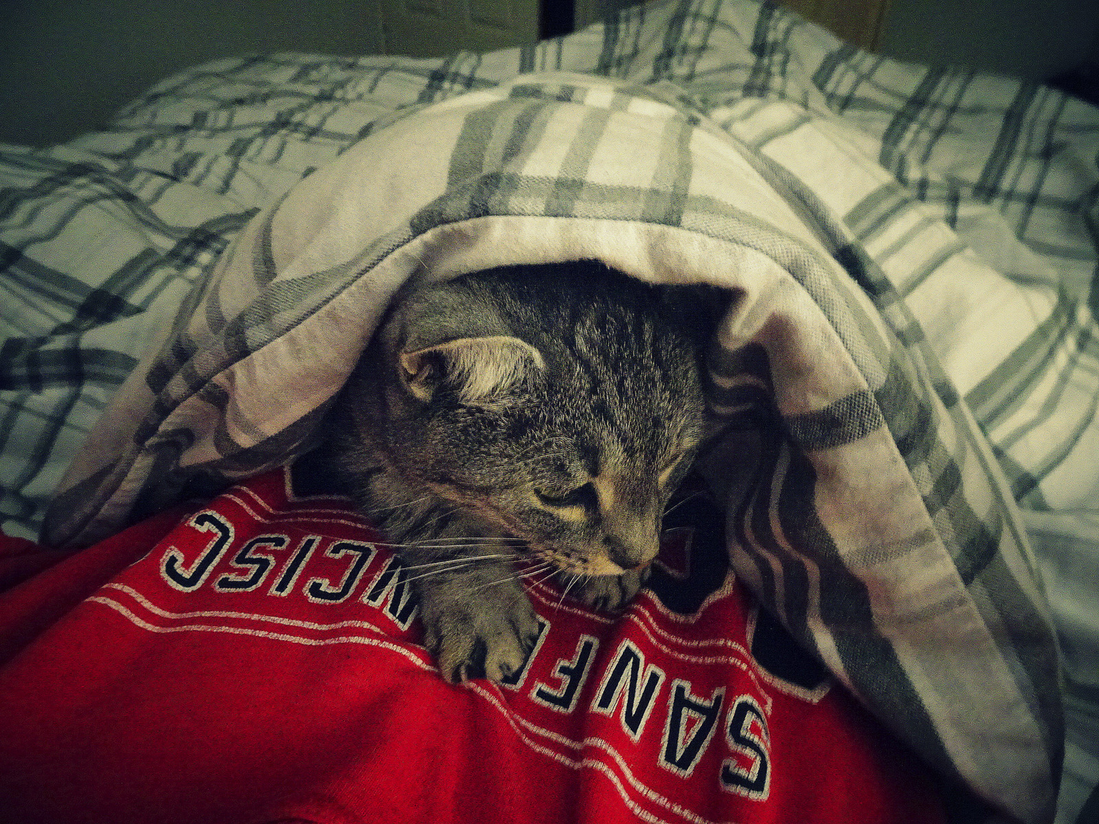 Anyway, we have two cats and a dog. The elderly cat sleeps ON me, the younger cat sleeps with my daughter, and the dog sleeps with my grandson. Cats are great! They even purr a lullaby to help you sleep 😉
